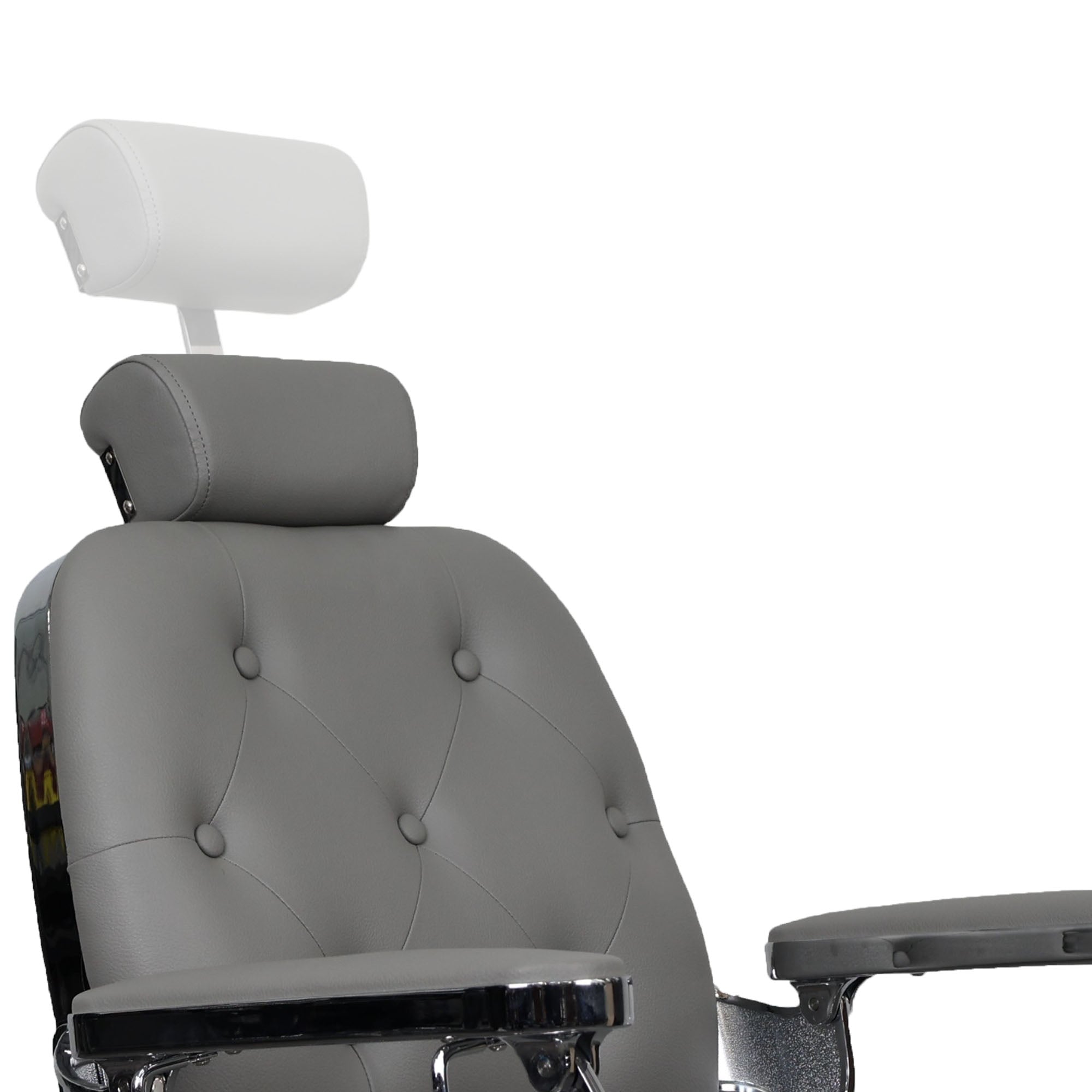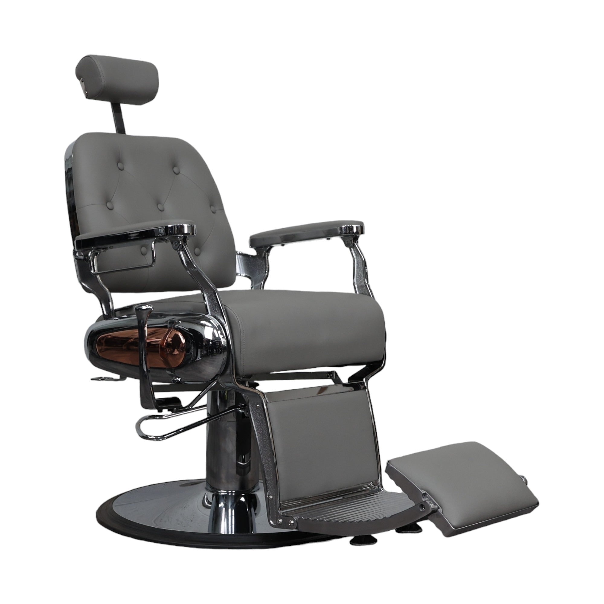 The Luxurious Belmont Barber Chair combines classic vintage design with modern functionality, making it the perfect addition to any professional barbershop. Featuring a distinctive round backrest with elegant button upholstery, this chair offers maximum client comfort while exuding timeless charm. The high-density foam padding, paired with premium synthetic leather upholstery, ensures both durability and easy maintenance, ideal for busy environments. The robust chrome-plated steel frame adds strength and stability, designed for daily use and long-lasting performance. The reclining backrest and adjustable footrest provide personalised comfort, allowing clients to fully relax during grooming sessions.
